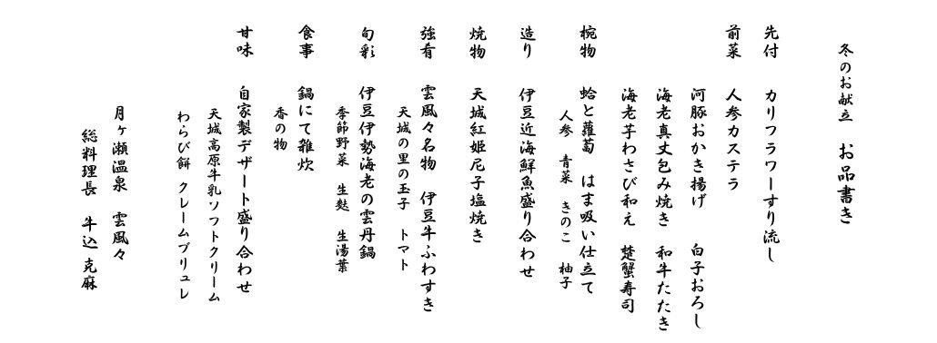 クリックしていただくと季節ごとのお品書きをご覧いただけます。